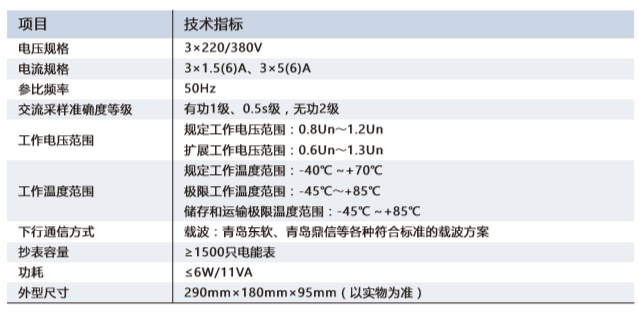 ● 抄表容量:RS485接口最大负载不少于64只电能表数据采集,载波抄表最大容量不少于1500只电能表