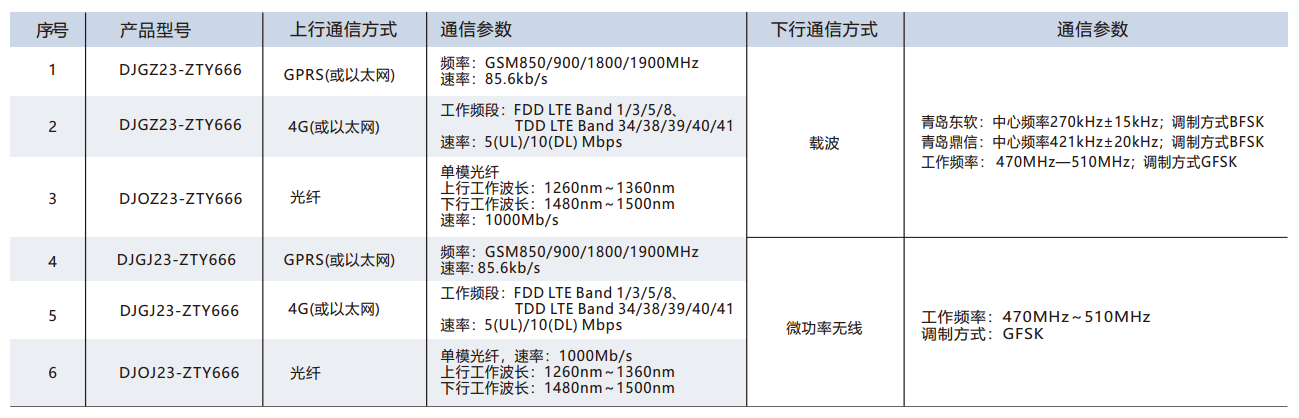 ● 下行通道:2路RS485通信接口、1路电力线载波(或微功率无线)通信接口