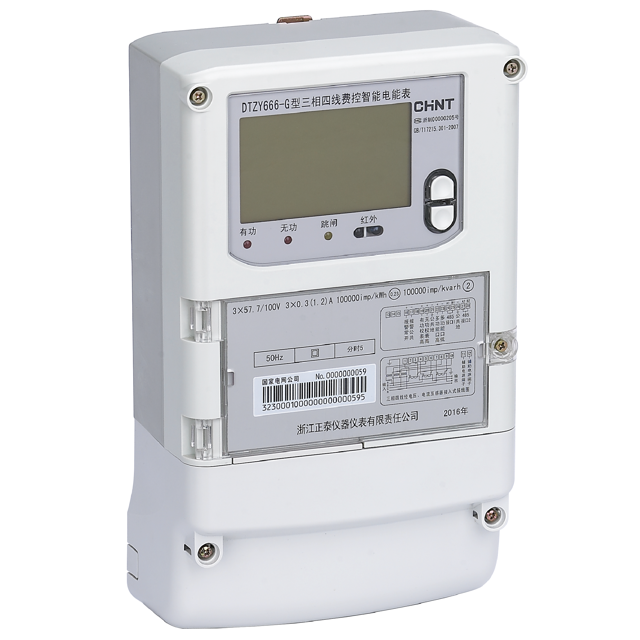 DTZY666-□型三相远程费控智能电能表采用大规模集成电路,应用数字采样技术,根据工业用户的用电管理需求进行设计、制造具有通信功能的电能表,主要用于参比频率为50Hz(或60Hz)的三相电网中,对中、小型工商业用户进行电能计量和电力质量监测。