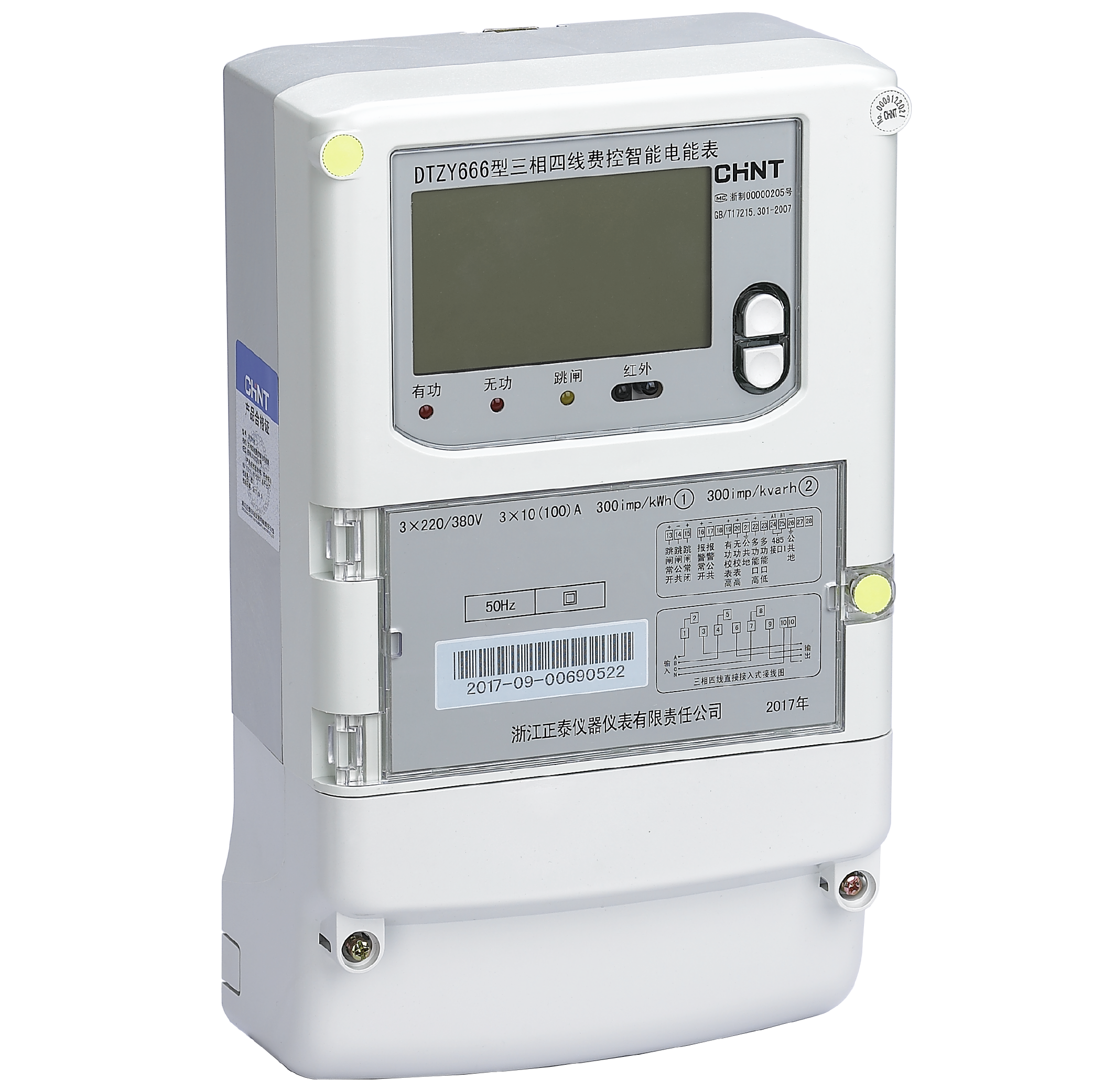 DTZY666型三相远程费控智能电能表采用大规模集成电路,应用数字采样技术,根据工业用户的 用电管理需求进行设计、制造具有现代先进水平的电能表,主要用于参比频率为50Hz(或60Hz) 的三相电网中,对中、小型工商业用户进行电能计量和电力质量监测。