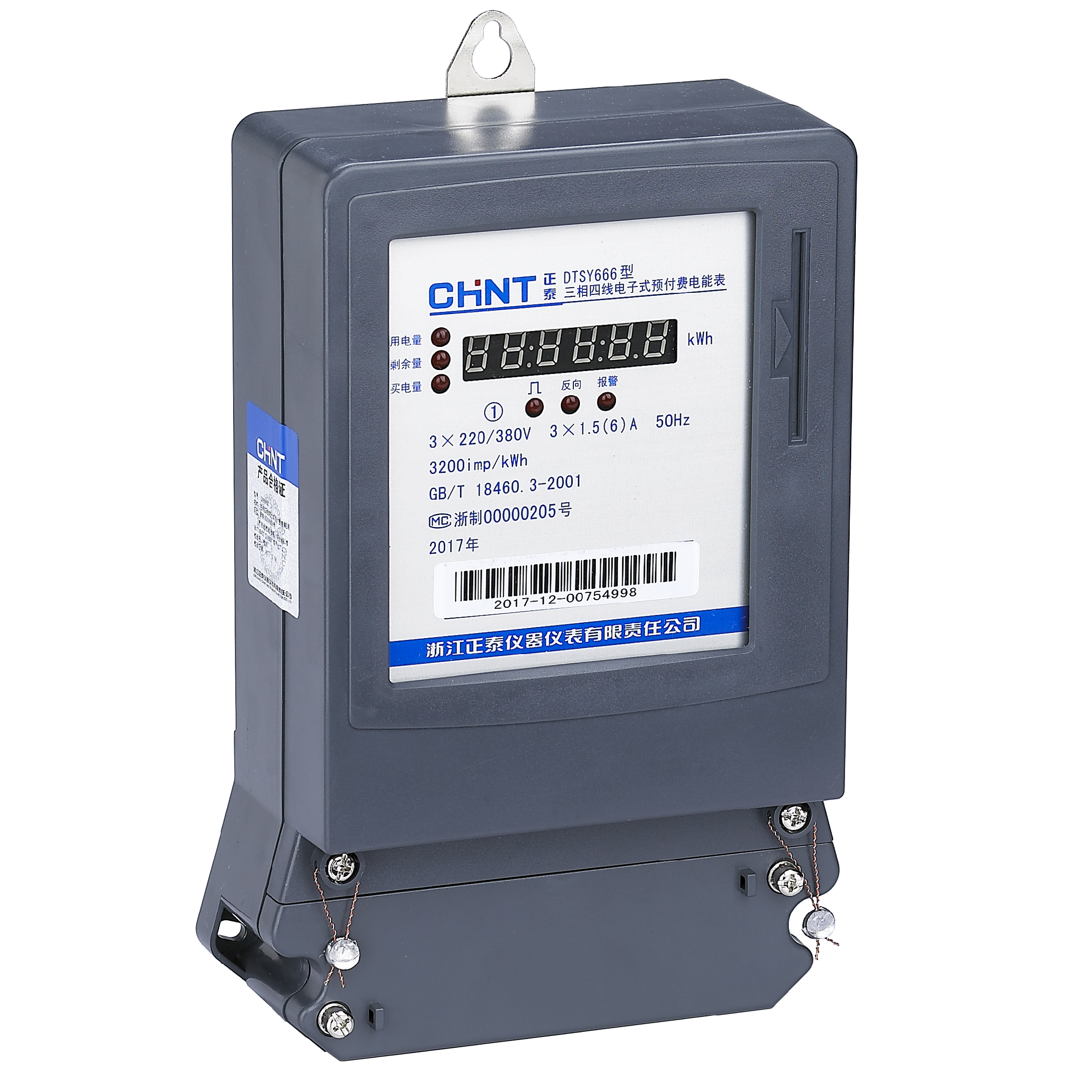 DTSY666型三相四线电子式预付费电能表(以下简称电能表)主要适用于实行先付费后用电的供电制度的三相用户,可实现电能计量、电量预购、最大负荷限制等功能,该产品是用电收费改革, 提高供用电科学管理水平,促进合理用电,节约用电的理想电能计量产品。