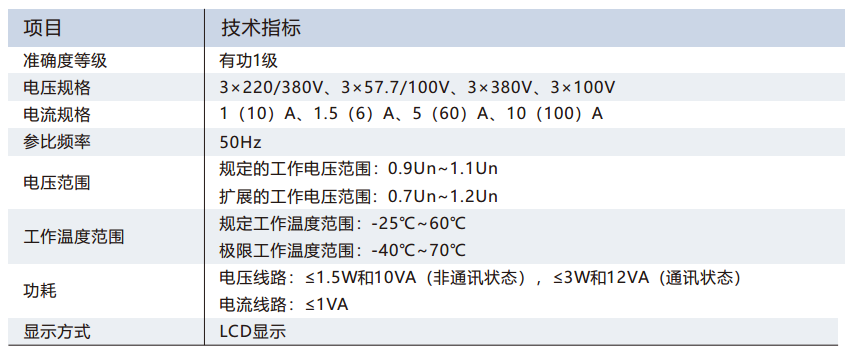 - 采用LCD显示电能数据,电能量显示6位整数、2位小数。