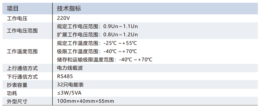 ● 上行通道:电力线载波通信接口。 电力线载波通信接口可通过集中器与主站管理系统进行数据交换