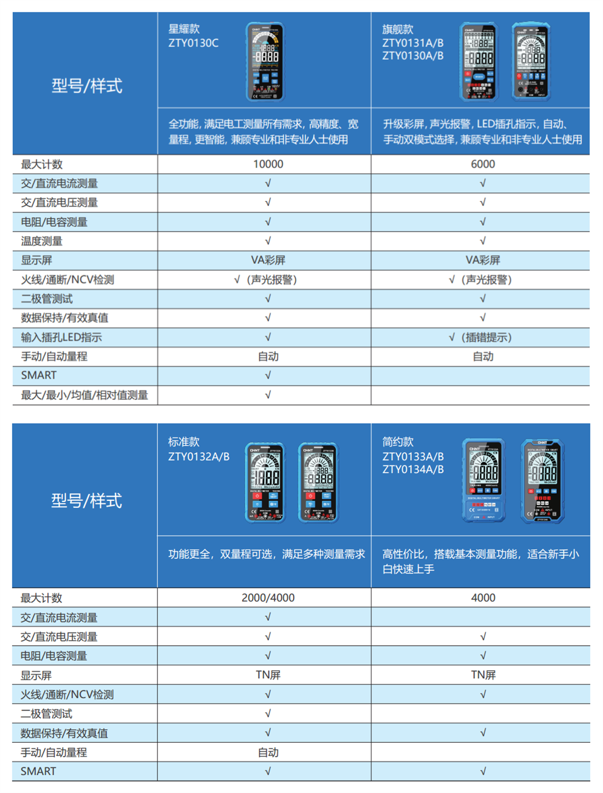 - SMART模式自动识别测量信号,信号切换自动跳档