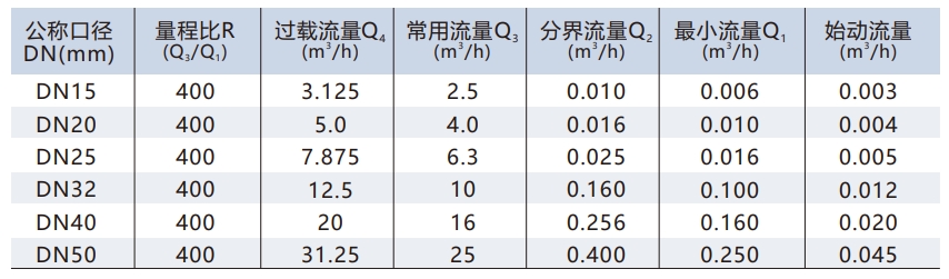 ● 自诊功能:流量传感器故障报警、温度传感器故障报警、电池欠压报警
