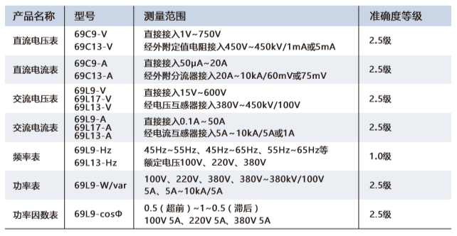 69系列仪表由测量线路、测量机构、指示装置构成,采用磁电系内磁式结构。全透明有机玻璃窗口及印刷刻度盘,整体美观大方,视域开阔。