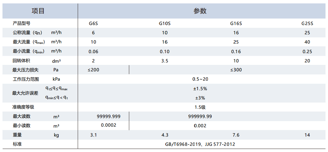 膜式燃气表(工商业用)
