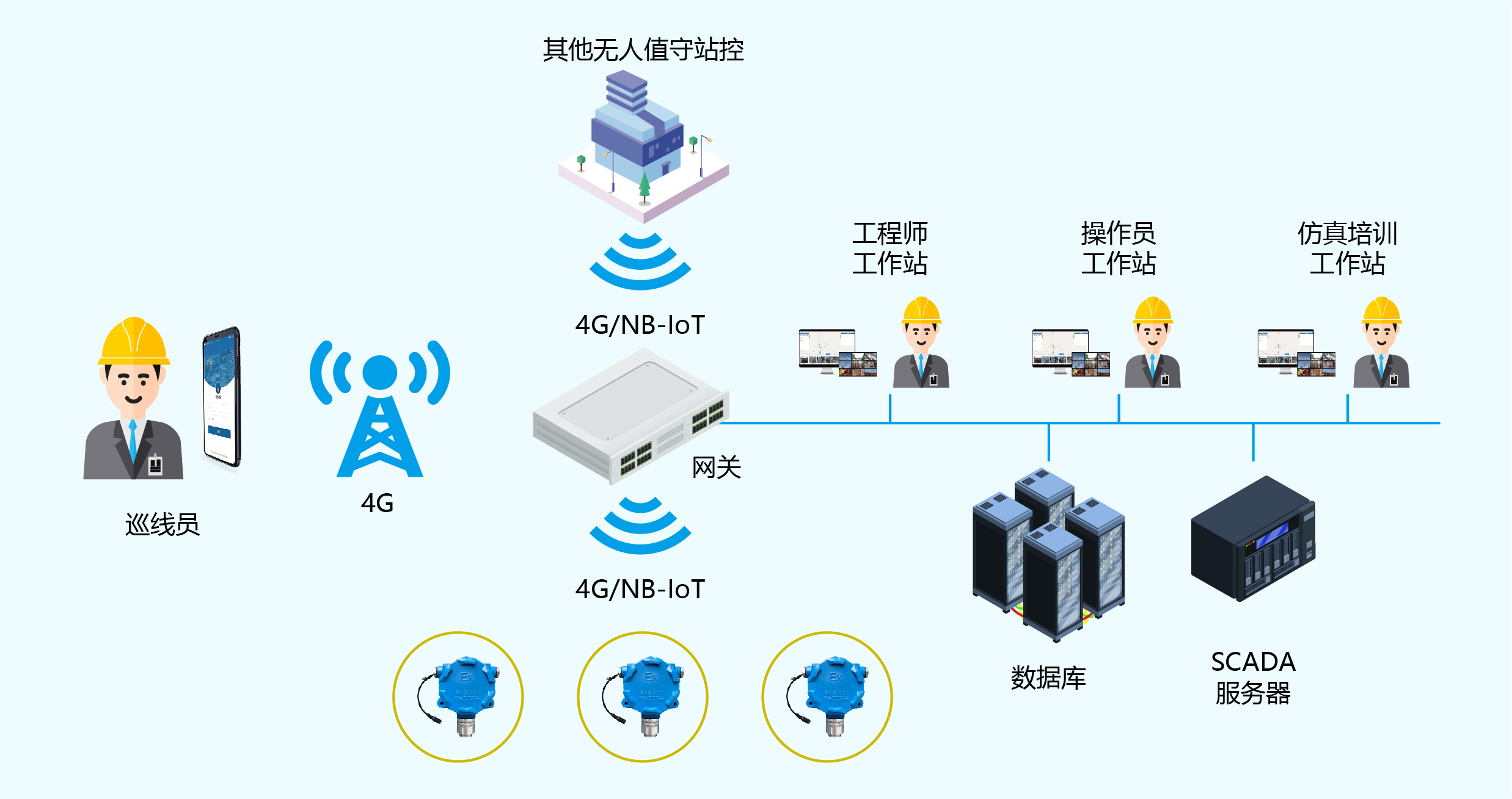 阀门井或管道井内基本属于密闭空间,若发生燃气泄漏将有发生爆炸的危险。阀门井泄漏预警系统主要针对燃气阀门井和燃气管道井进行泄漏侦测预警。